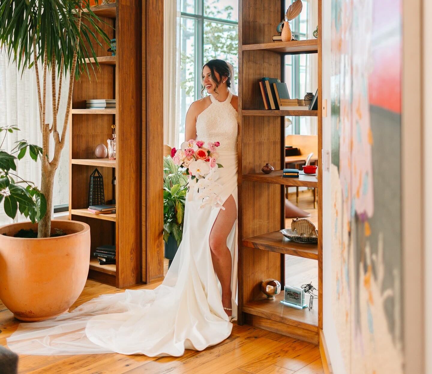The process begins with your first custom gown appointment. Our team will reach out to you in advance to gather information about your wedding and the style of gown you’re looking for. Be prepared to share inspiration photos of your dream dress!