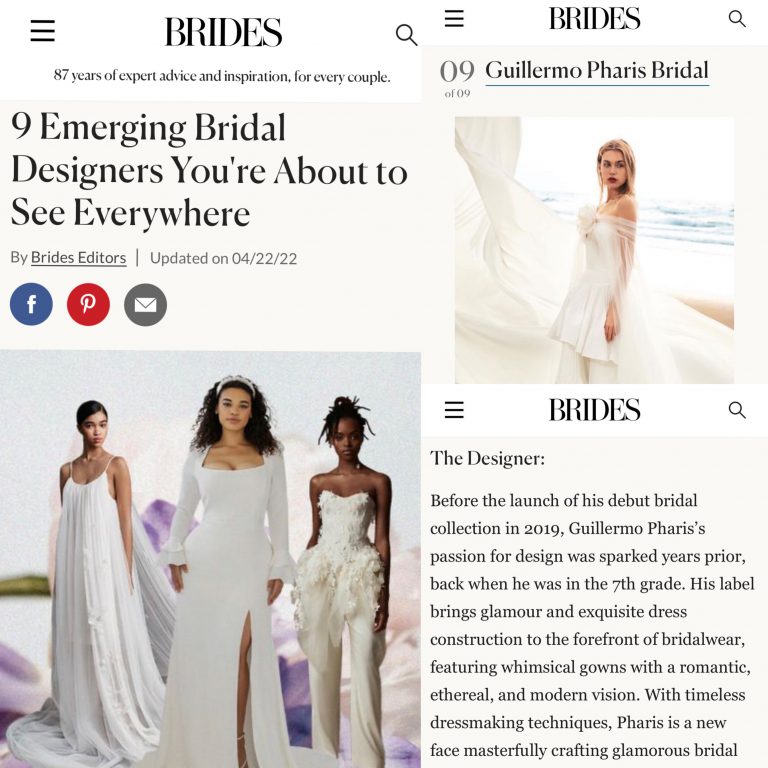 A finalist nominee for “The Rising Star Awards 2025” by The Fashion Group International in the Bridal Category — click here to learn more about Guillermo, he is indeed an emerging talent growing in the industry. From the first sketch to the final fitting, you’ll work directly with Guillermo Pharis. This special designer-to-bride connection adds a magical, personal touch to your wedding journey.