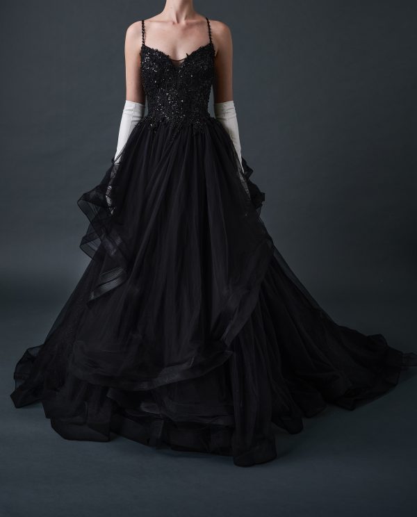 Black Tulle Beaded Asymmetrical Wedding Dress