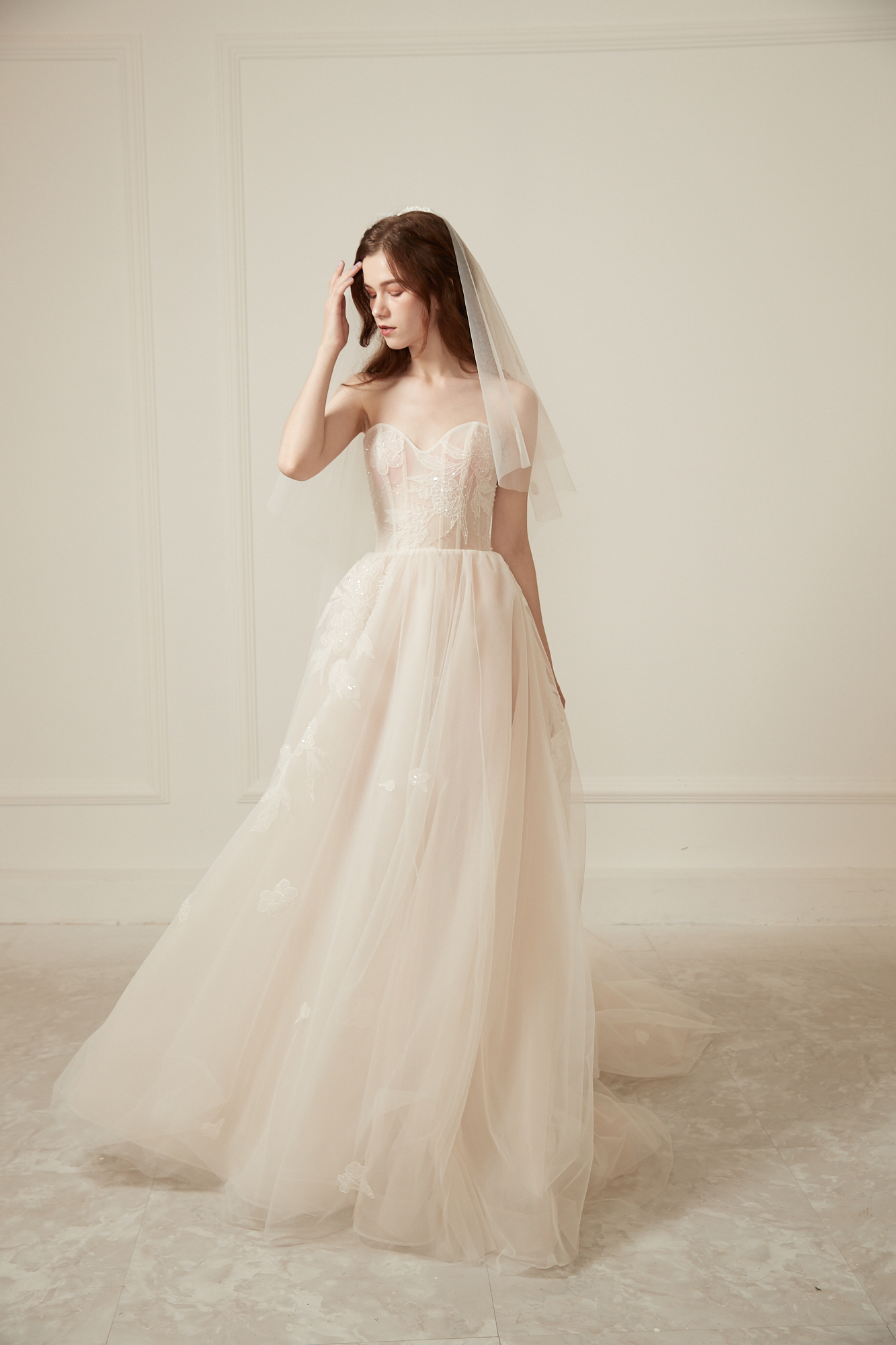 Ethereal Strapless A-Line Wedding Dress – Soft Champagne Tulle